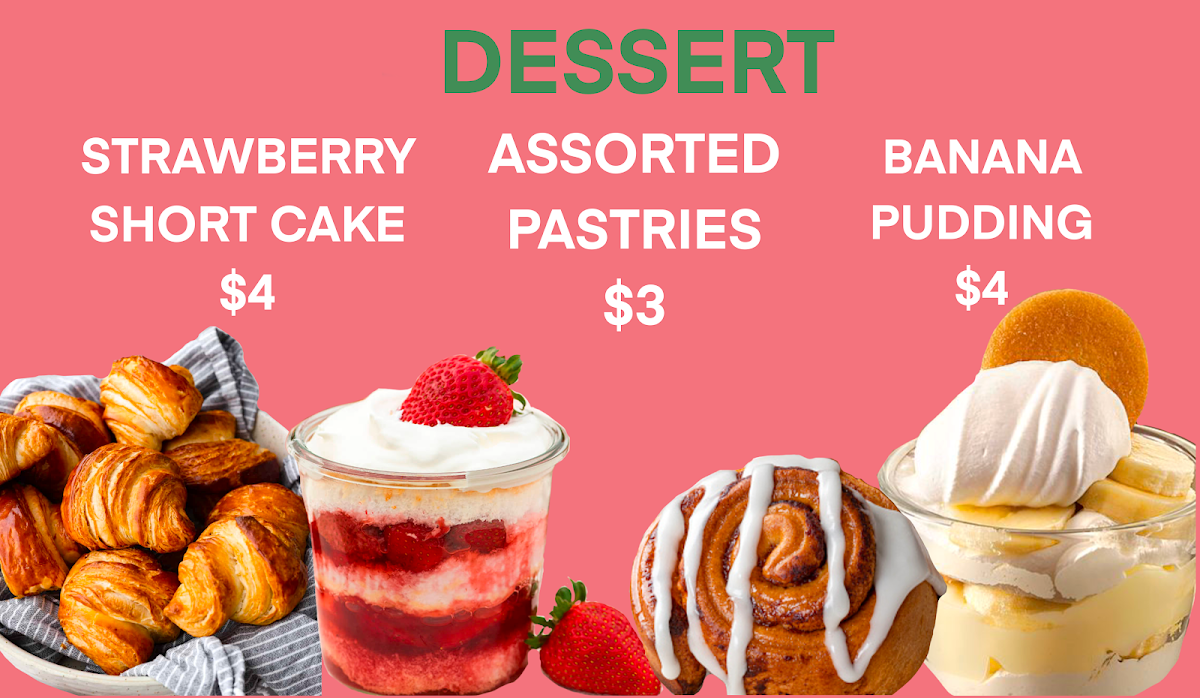Choose from fresh made Pastries and dessert options